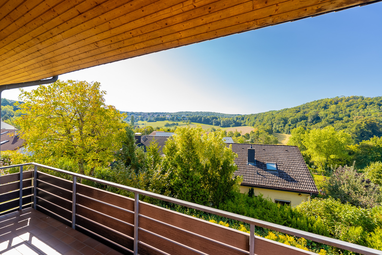 EG mit großzügiger Fensterfront und großem Balkon, ebenfalls mit Weitblick