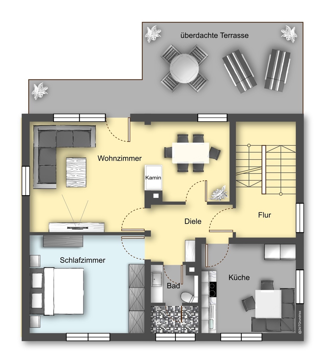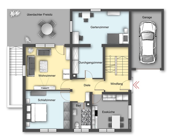 Wohnung OG: 2,5 Zimmer mit Balkon und Überdachter Terrasse