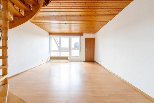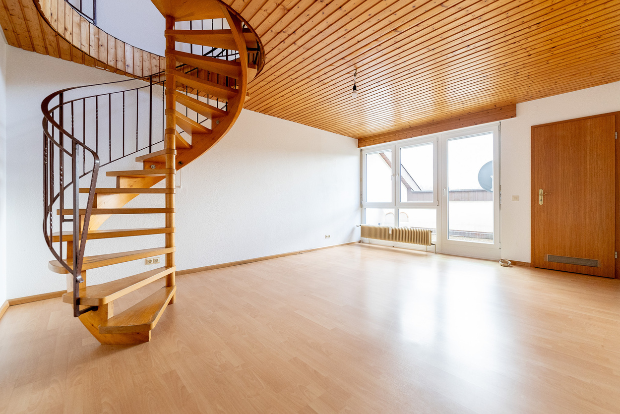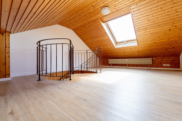Gut vermietete 1,5-Zi.-Wohnung (ca. 40 m²) als "Raumwunder" mit ausgebautem Galeriezimmer und Loggia mit Blick über Steinen.
