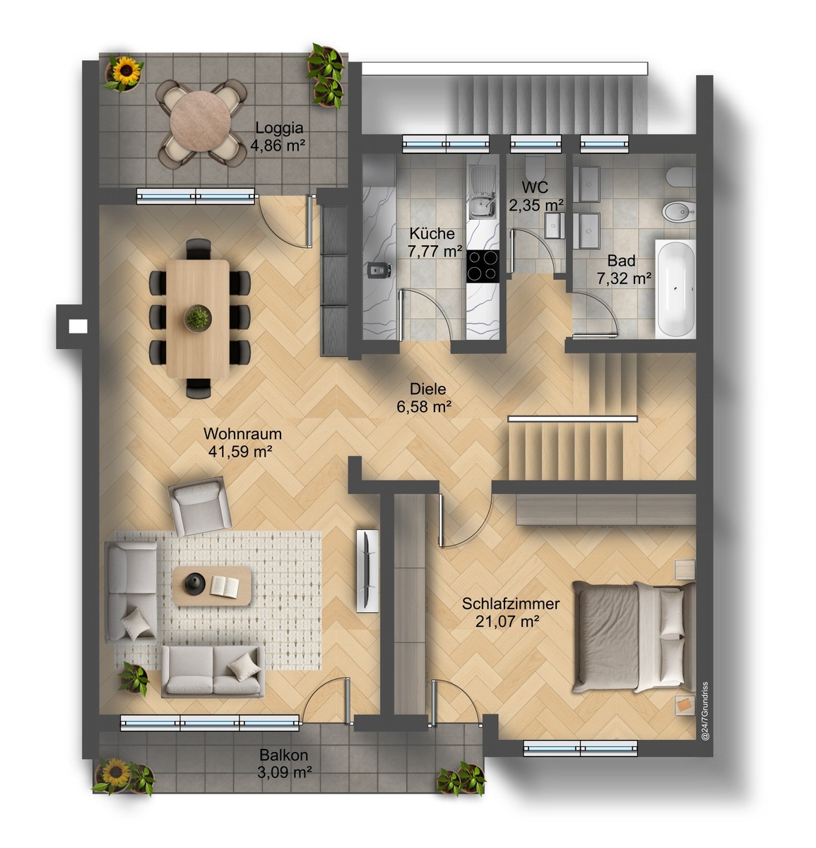 | Provision | 3,57 % Käuferprovision inkl. MwSt., verdient und fällig mit Beurkundung des notariellen Kaufvertrages. Der Immobilienmakler hat einen provisionspflichtigen Maklervertrag mit dem Verkäufer in gleicher Höhe abgeschlossen. |