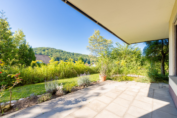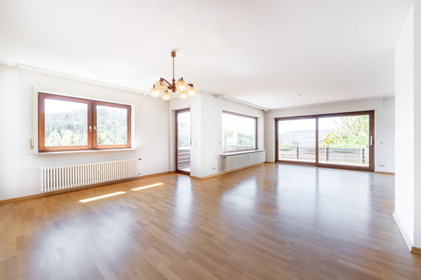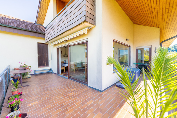 EG mit großzügiger Fensterfront und großem Balkon, ebenfalls mit Weitblick