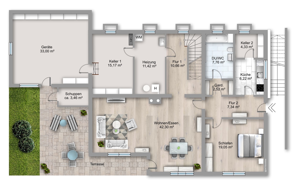 EG und DG separat nutzbar – auch als 3-Parteienhaus möglich