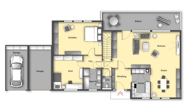 Die Einliegerwohnung verfügt über zwei Zimmer und ist über einen eigenen Eingang direkt über den Gartenzugang von der Straße aus erreichbar. Damit eignet sie sich hervorragend für Angehörige, Gäste, zur Vermietung oder zur beruflichen Nutzung.